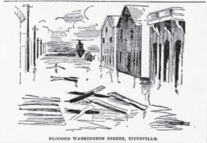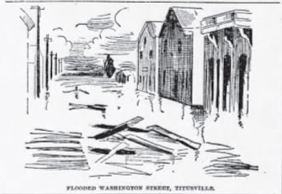 A dispatch from Titusville tells the following pitiful story: Flood and fire have wiped out fully one-third of this town, and at least two score of human lives have been miserably lost amidst horror and destruction.