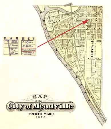 Crawford County was by no means immune to slave hunters scouring its countryside. One account from 1836 tells of Ben, an escaped slave from Maryland whose work ethic and amiable demeanor had earned him the respect of Meadville residents. When his owner turned up, Ben’s many friends rallied to his aid after his capture. As the now terrified Ben stood watching his legal return being arranged between his former master and the Justice of the Peace, townspeople crowded into the small, two-room office on Water Street filling it to capacity. Ben soon recognized someone signaling to him silently. Ben nodded and at an opportune moment, he lowered his hulking frame to blend in with the standing congregation who quickly ushered him out a side door. When the owner and his henchmen tried to pursue, the crowd intentionally slowed their exit. Ben, meanwhile, fled west down Cherry Alley to the banks of French Creek where he plunged in and swam to a wooded hiding spot. Eventually, the posse stumbled out onto the street only to be met by others in on the plot who convinced the men that their fugitive had gone east in the opposite direction.
